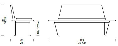 Bancheta 2 locuri cu sezut si spatar tapitat, platou din MDF vopsit 28mm, cadru si picioare metalice.