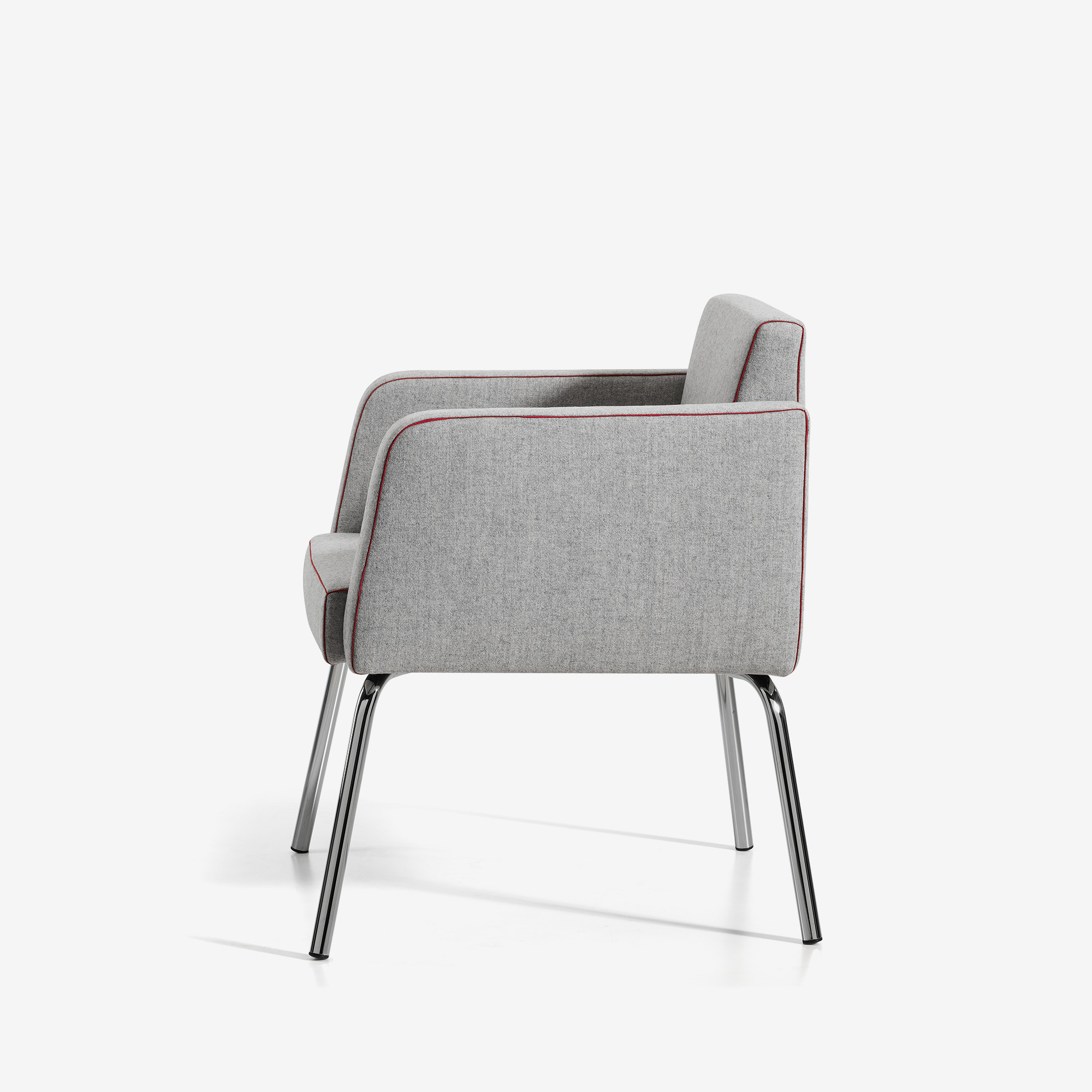 Scaun cu picioare din otel inox, brate complet tapitate.